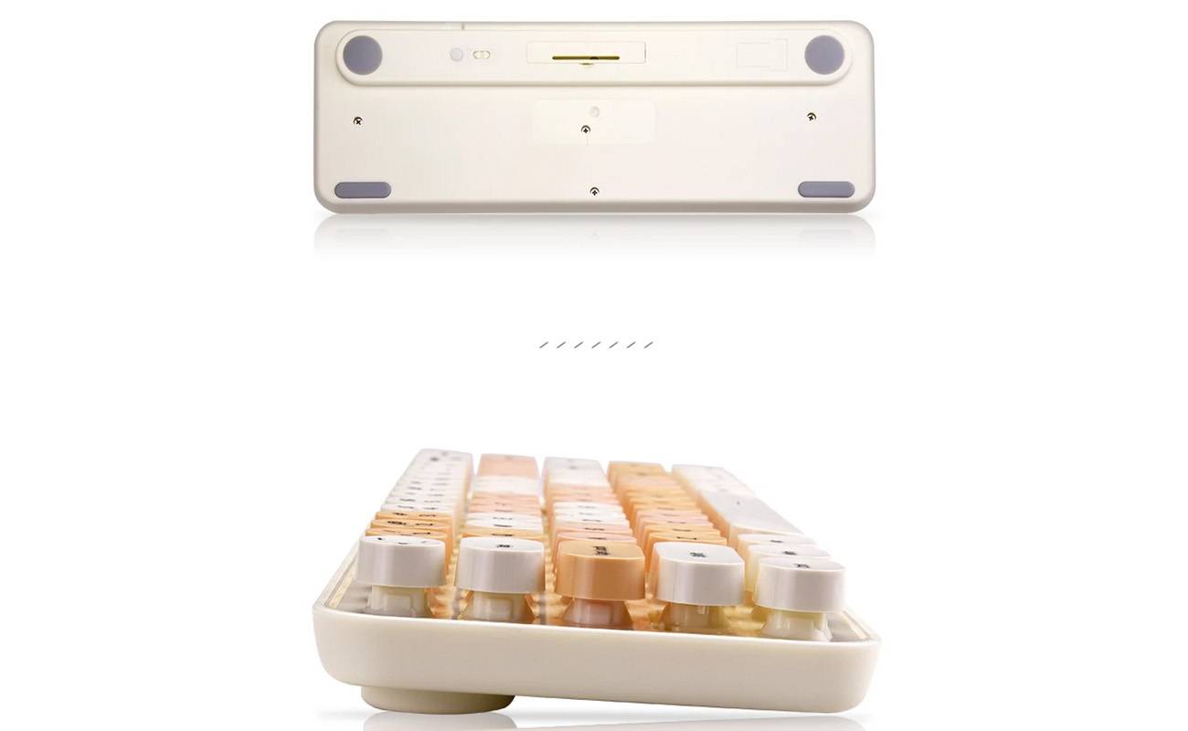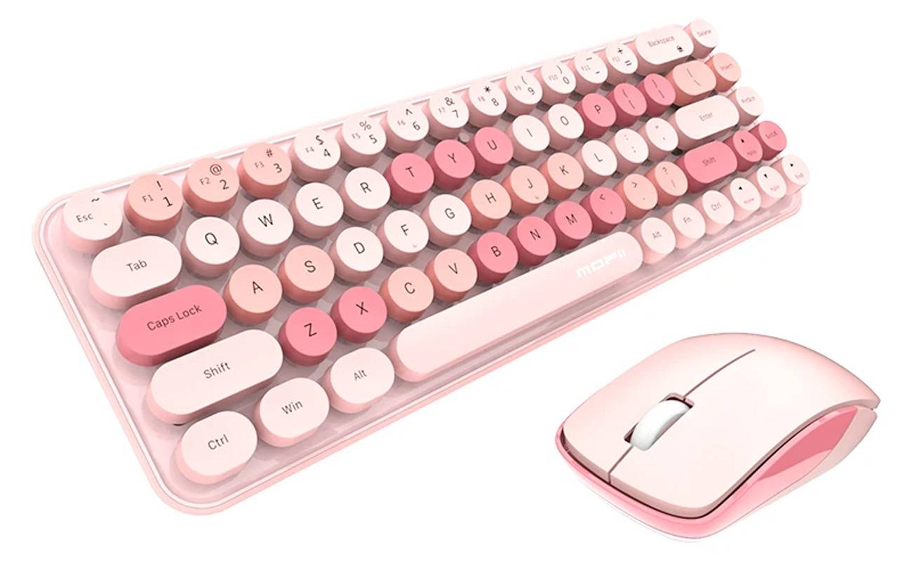 ابعاد کیبورد، 317 در 108 در 22 میلیمتر و وزن آن 468 گرم است. این مشخصات بیانگر یک صفحهکلید نسبتاً کوچک و جمعوجور هستند که قسمت نامپد عددی (NumPad) را حذف کرده و فضا را برای قرارگیری موس یا سایر وسایل روی میز باز میکند. جنس بدنه کیبورد از پلاستیک است که درعین مقاومت مناسب، وزن کلی را پایین نگه میدارد. اما نکته متفاوت و جالب توجه در طراحی، رنگبندی پاستلی و چینش نامنظم کلیدها در سه طیف نزدیک به هم است؛ این امر جلوهای بانشاط و چشمنواز به محصول میبخشد. شکل گرد کلیدها نیز حالتی خاص و فانتزی به کیبورد میدهد و از یکنواختی الگوی کلیدهای مربعی دوری میکند. ماوس نیز با ابعاد 96 در 55 در 20 میلیمتر، محصولی سبک و خوشدست محسوب میشود. طراحی ارگونومیک و وزن سبک آن، موجب میشود در استفاده طولانیمدت فشار زیادی به مچ دست وارد نشود. سه دکمه فیزیکی شامل کلیک چپ، کلیک راست و اسکرول روی ماوس تعبیه شدهاند که برای کارهای عمومی کافی است. اگرچه این ماوس از نظر تعداد دکمه برای بازیهای حرفهای یا نرمافزارهای تخصصی محدودیت دارد، اما برای وبگردی، ویرایش اسناد یا کارهای اداری گزینهای مناسب به نظر میرسد.