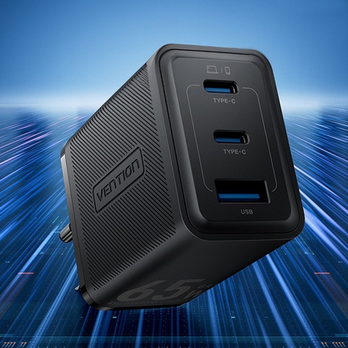 ویژگیهای کلیدی شارژر دیواری 65 وات Vention با سه درگاه سریع (USB-C / USB-C / USB-A)