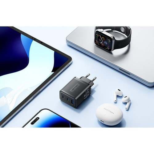 پورتها و درگاههای شارژر سریع دیواری Vention 65 وات سهپورت با تکنولوژی GaN (FERB0-EU)